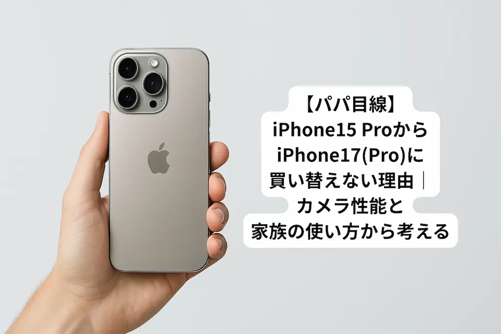 毎年新しいiPhoneが出るとワクワクするものの、今回は冷静に「見送り」を選択しました。特にパパとして重視している カメラ性能 や、祖父母とのテレビ通話など「家族との使い方」を考えると、15 Proでまだ十分だと判断したからです。